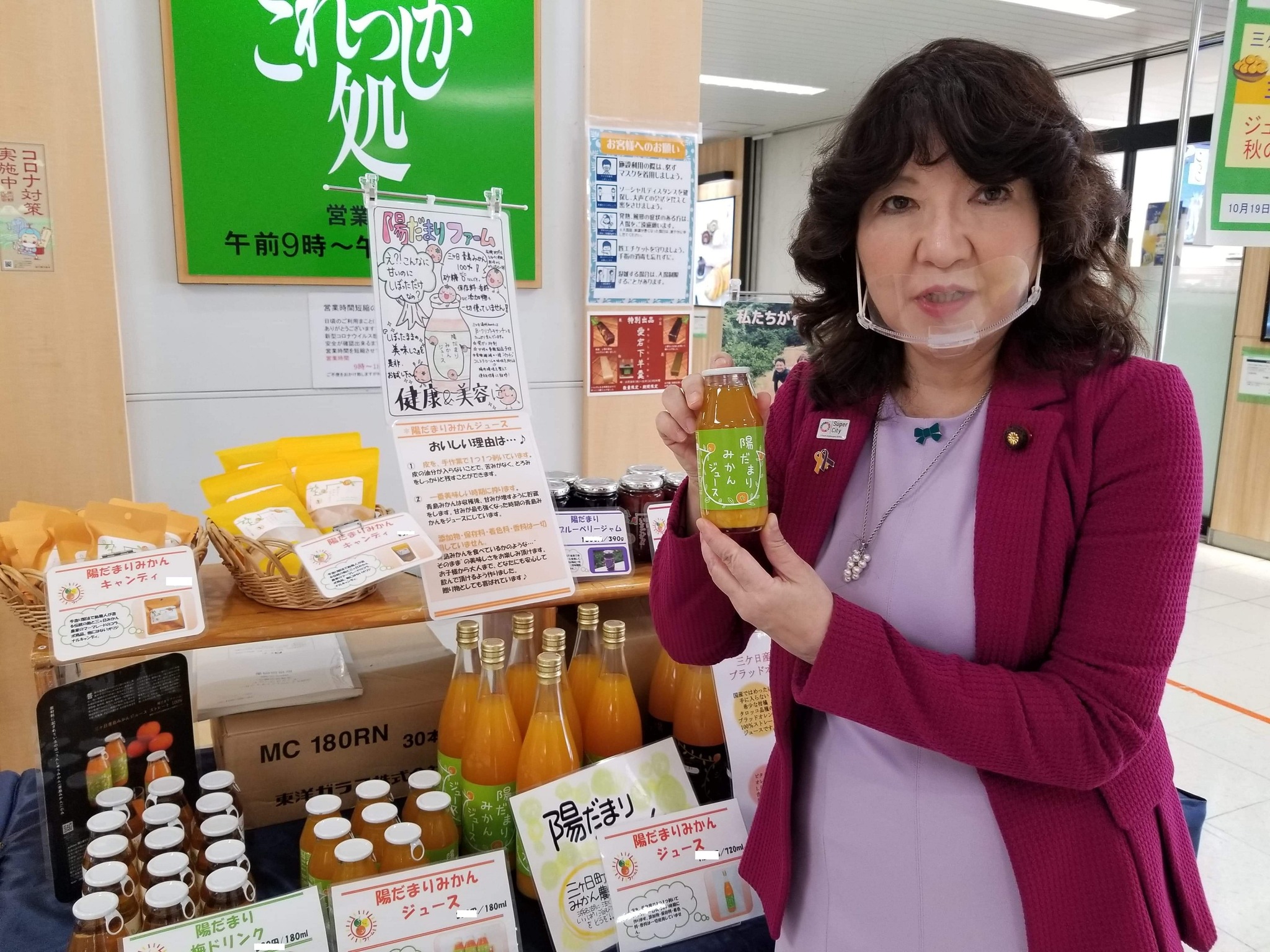 に陽だまりファームのみかんジュースを購入して頂きました。
