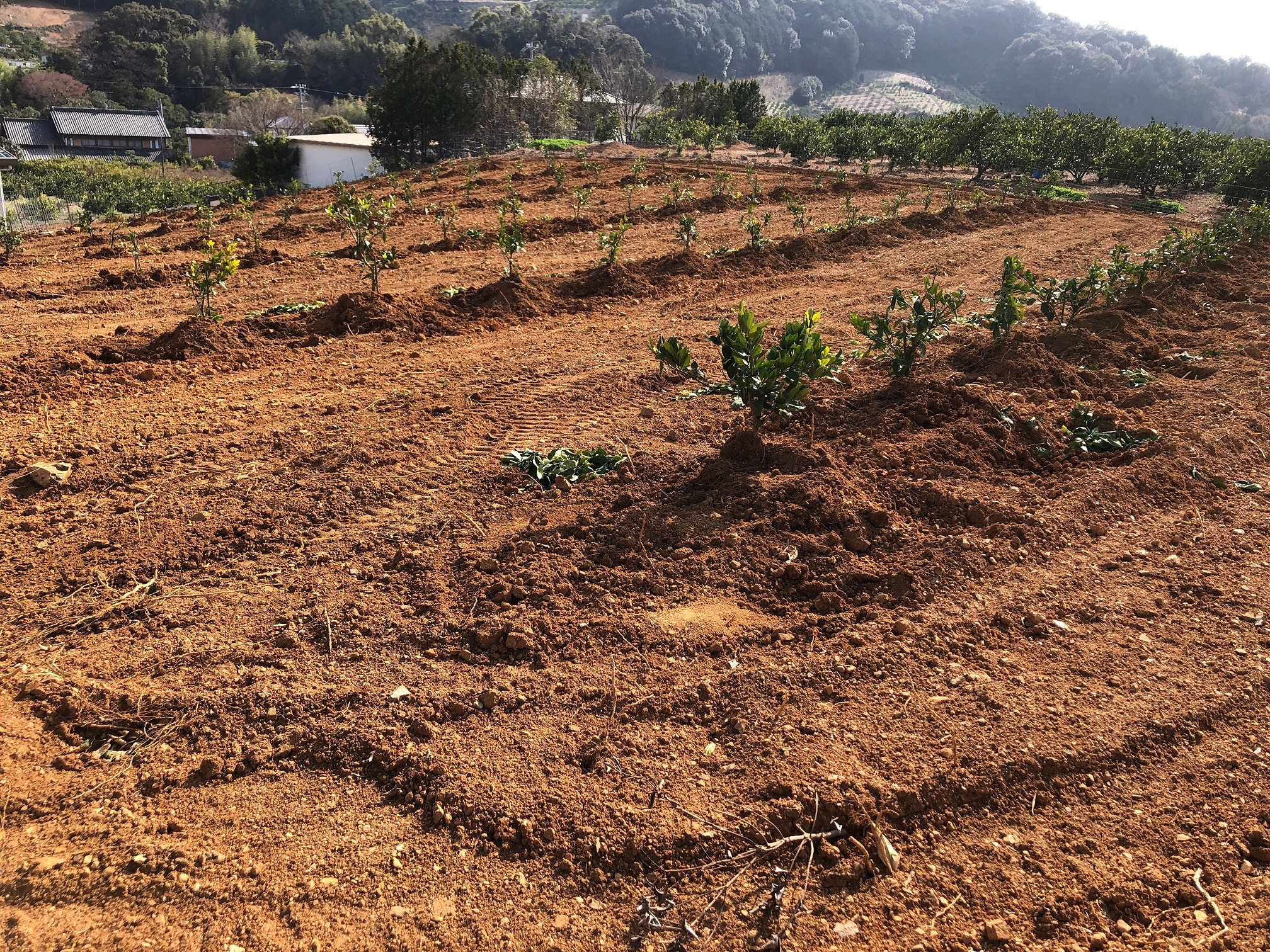 古くなった木は植え替えをします。一番使うときに機械が壊れます。作業が思うように進みません。みかんの木を植えています。私たちは陽だまりファームです。