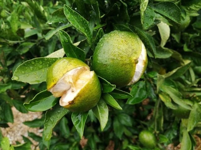 果皮の成長より果肉が大きくってしまって割れてしまいます。