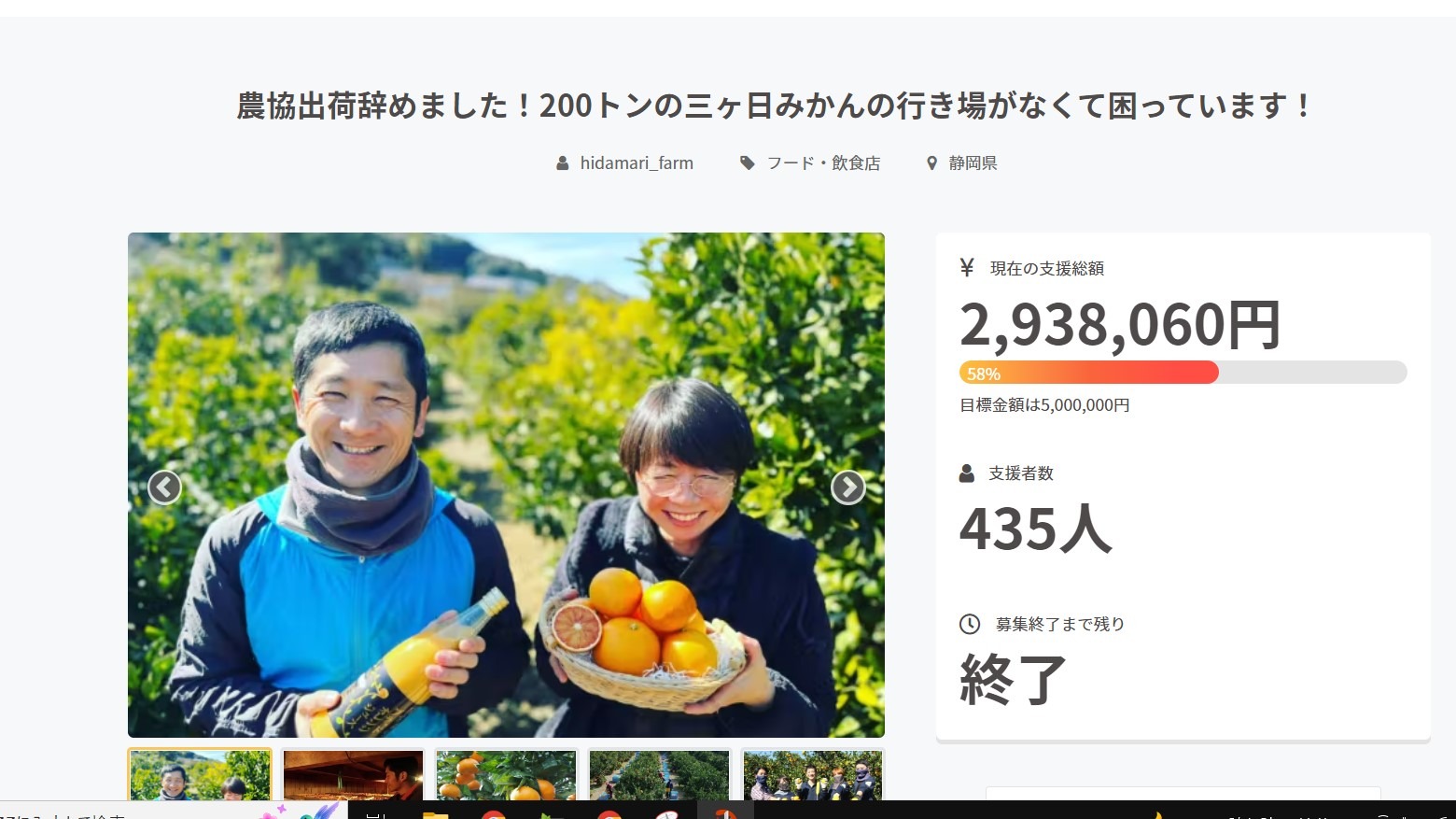 多くの皆様にシェアをして頂いたおかげで、陽だまりファームの三ヶ日みかんを販売したい!!