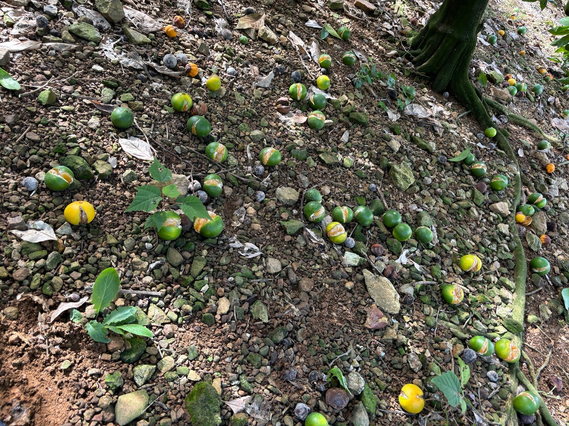 カメムシ被害、裂果で落下してしまったみかんもあります。