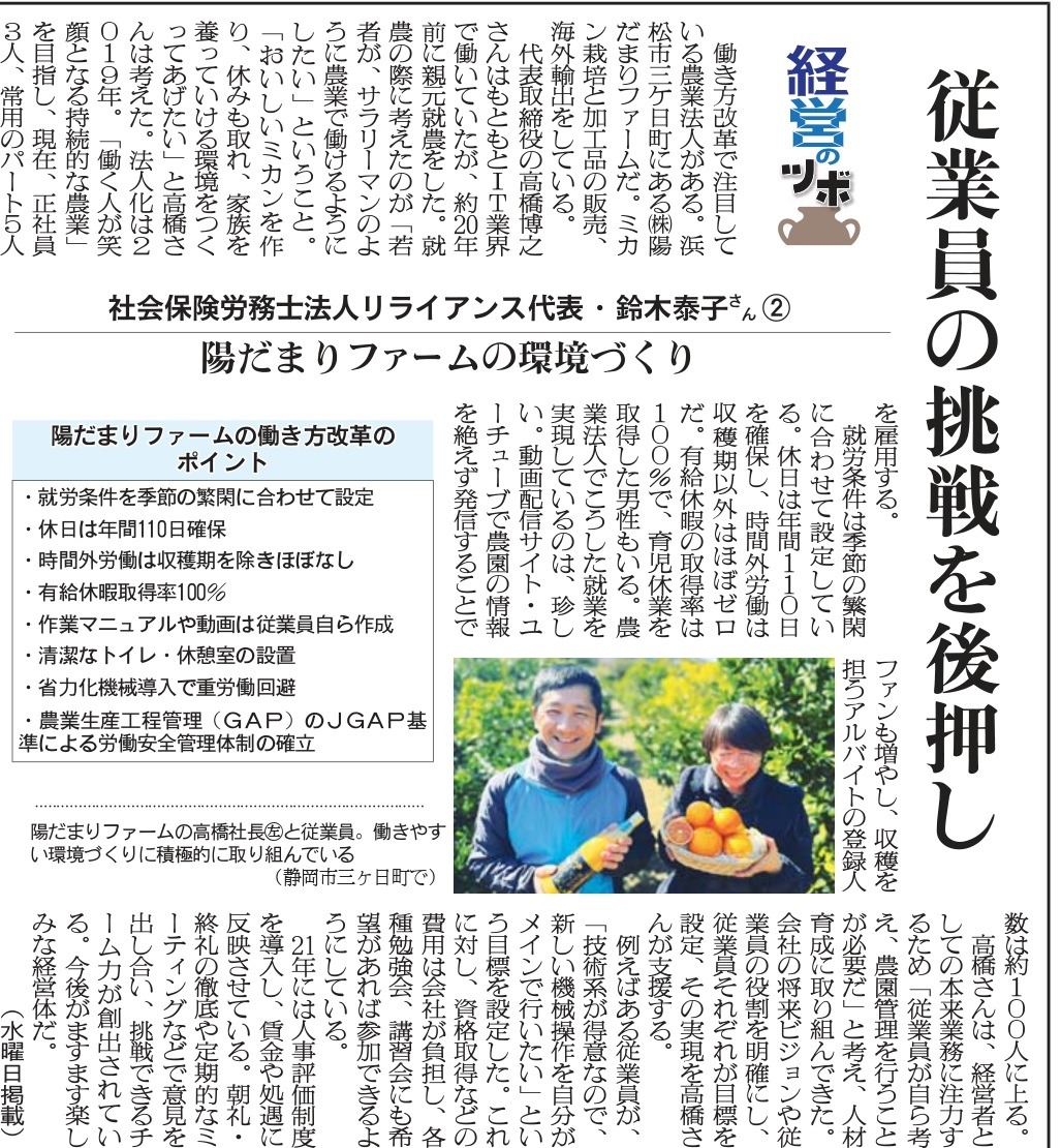 日本農業新聞 12月11日掲載 経営のツボ | 陽だまりファーム