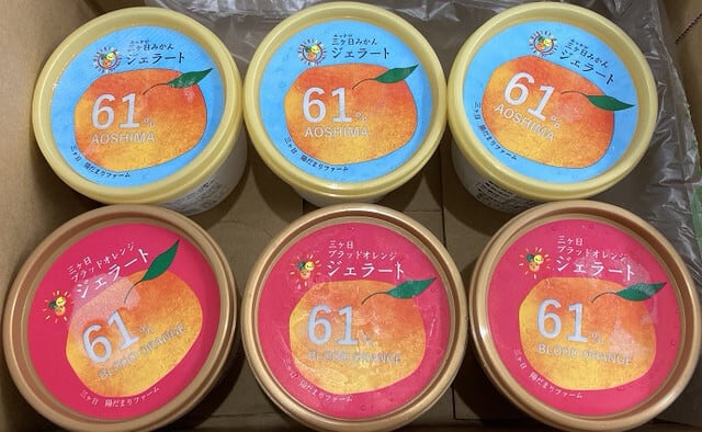 果汁たっぷりでしっとりとした食感 陽だまりファーム 三ヶ日みかんジェラート3個 ブラッドオレンジジェラート3個 6個入り 果汁61%使用!